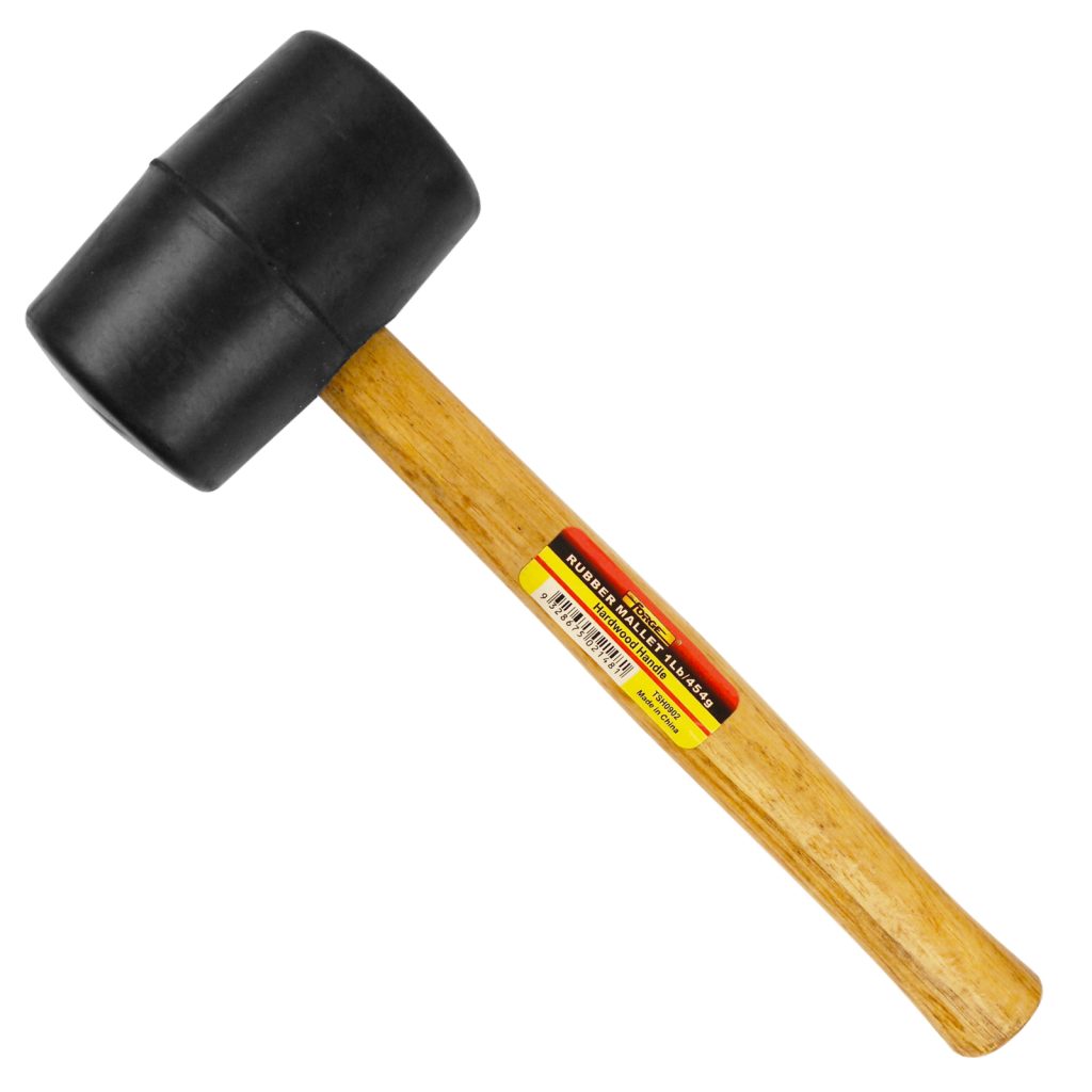 Rubber head helps minimize marring and surface damage. Tough rubber head molded to a wood handle.