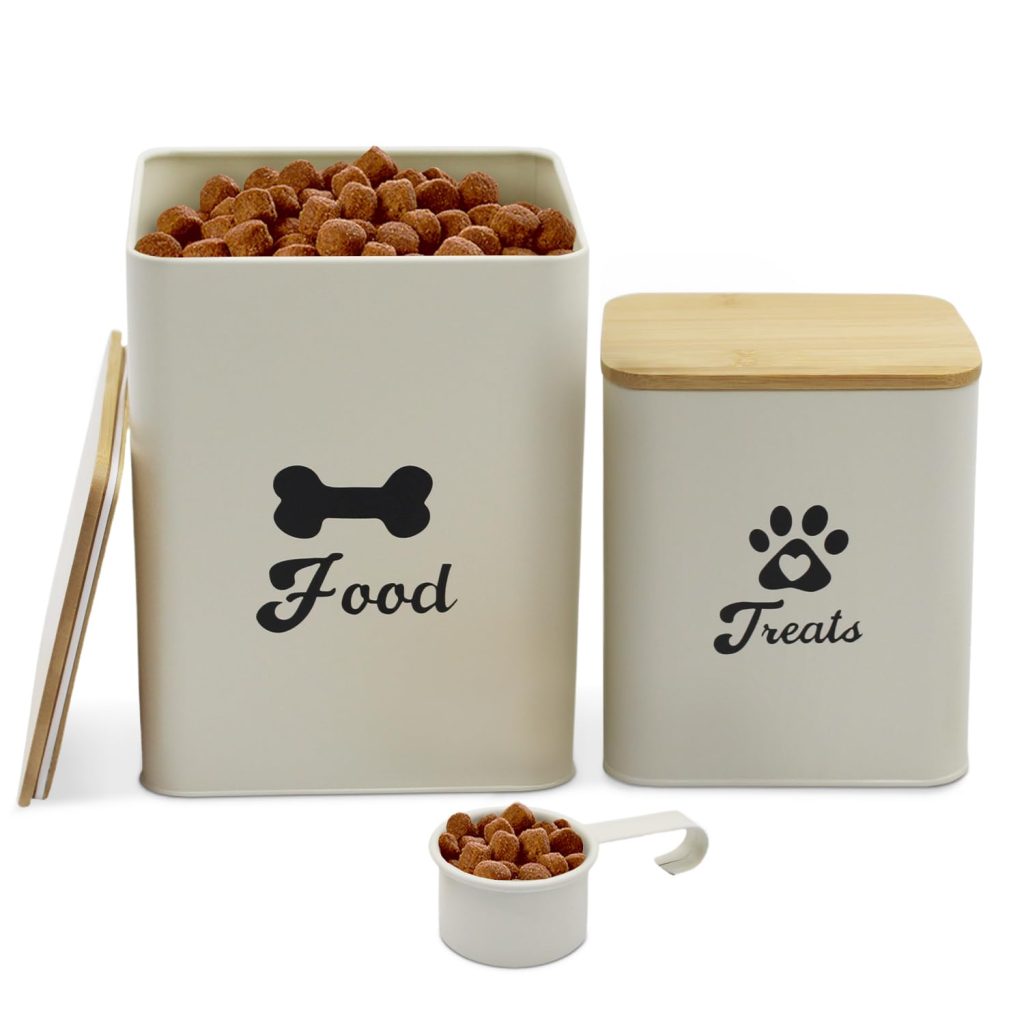 2-piece Off-White Pet Food Storage Canister Set with Spoon and Bamboo Lids