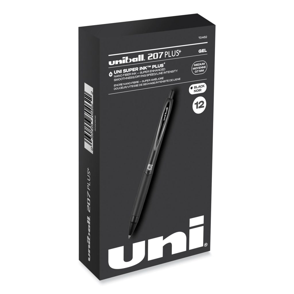 Take your writing to new heights with 207 Plus+ Retractable Gel Pens. Their precision point delivers rich, clean lines, and their advanced gel ink produces an enhanced smudge- and smear-free writing experience with exceptional smoothness, fast drying times and extra-bold line intensity, ensuring that every word you write stands out. Ideal for everyday writing tasks, jotting down notes and signing all of your important documents, Super Ink PLUS+ also entraps the gel in paper to produce fraud-, fade- and water-resistant documents that resist check-washing and bleaching. A seamless rubber grip provides a comfortable hold that helps you complete long writing projects with precise control. Refine your style with the sophisticated profile of 207 Plus+ gel pens. Pen Sub-Brand & Product Family: 207 Plus+; Pen Type: Gel Pen; Pen Style: Retractable; Pen Tip Type: Conical.