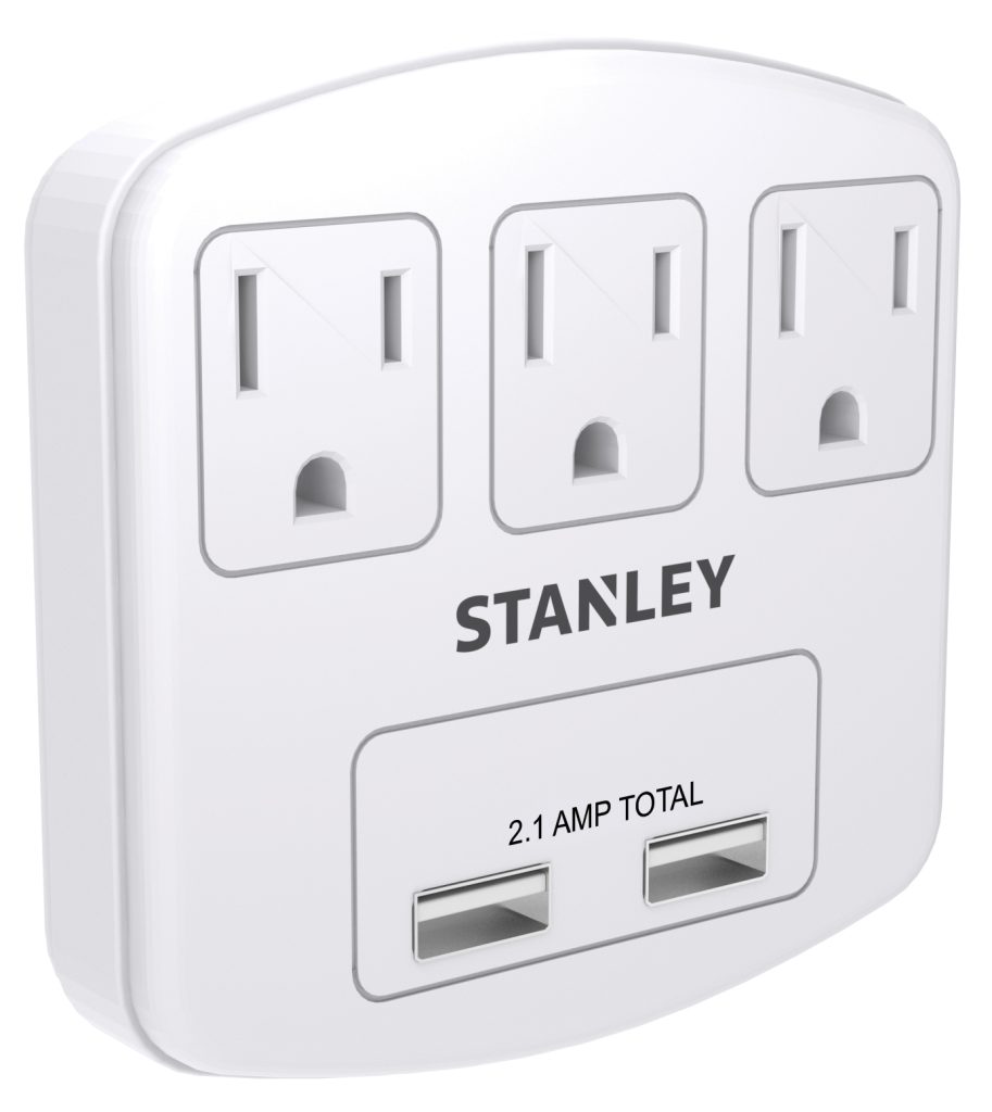 Three Outlet Grounded Adapter with two USB ports (Total 2.1A).