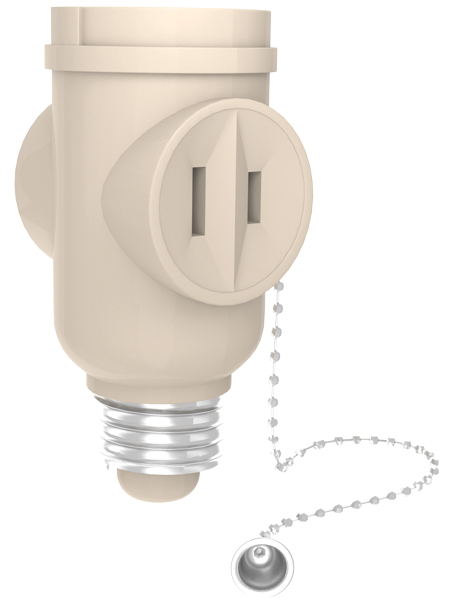 30501 Beige Pull Chain E27 Socket Adapter with 2 Polarized Outlets