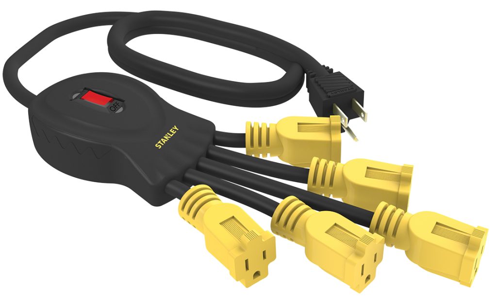 5-Grounded Outlets on flexible arms to easily accommodate bulky adapter plugs. On/Off circuit breaker