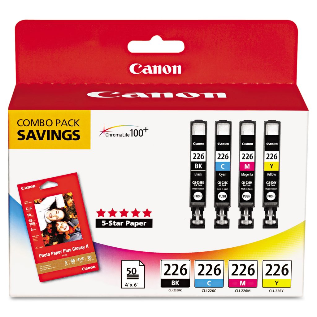 Convenient, at-home photo printing. Produce sharp detailed prints every time. Beautiful and crisp prints that are scratch-, smudge-, water- and fade-resistant. Device Types: Inkjet Printer; Color(s): Black; Cyan; Magenta; Yellow; Supply Type: Ink/Paper Combo; Market Indicator (Cartridge Number): CLI-226.