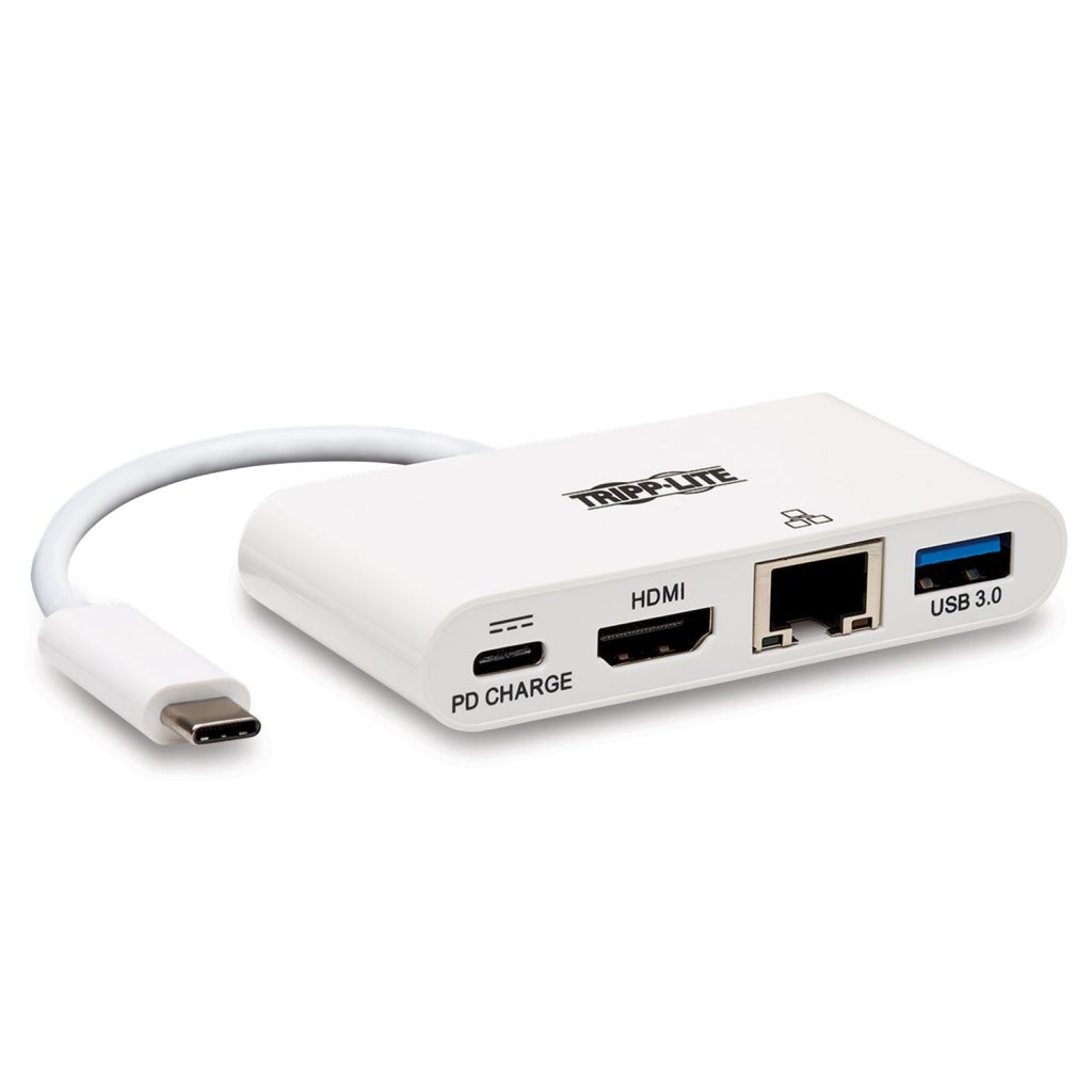 Adds HDMI, USB A, USB C PD charging and Gigabit Ethernet. Connect to USB C or Thunderbolt 3. Transmits video signals from sources supporting USB C DisplayPort Alt Mode. Delivers UHD picture quality at resolutions up to 4K x 2K @ 30 HZ. Connects to a wired Gigabit Ethernet when Wi Fi is weak or unavailable. Power Delivery port provides 20 V 3A (60W) power output for charging connected device. USB A supports USB 3.1 Gen 1 speeds up to 5 Gbps for fast data transfer. For Use With: Smartphones; Tablets; Computers; Connector/Port/Interface: USB C; 4K HDMI; USB A; PD Charging; Width: 1.57″; Depth: 3.15″.