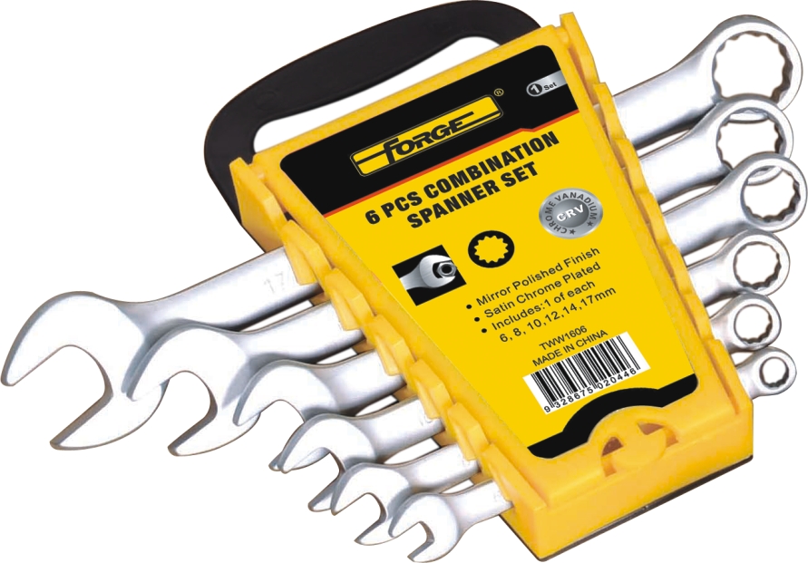 This easy to carry case stores 6 combination wrenches for easy carry and maximum portability. The wrenches, with one open end and one box end, are chrome vanadium for long life and rugged service.
