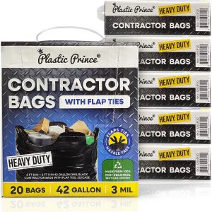 Products Showing 1-2 of 2 products Name (A-Z) Name (A-Z) Name (Z-A) Newest First Oldest First SKU / 434720 “43” x 49” 65 Gallon 2Mil Black Trash Bags with Flap Ties, 20/Box, 120/Case” Add to Cart Add SKU / 32503F20 32” x 45” 42 Gallon 3Mil Black Contractor Bags with Flap Ties, 20/Case Add to Cart Add