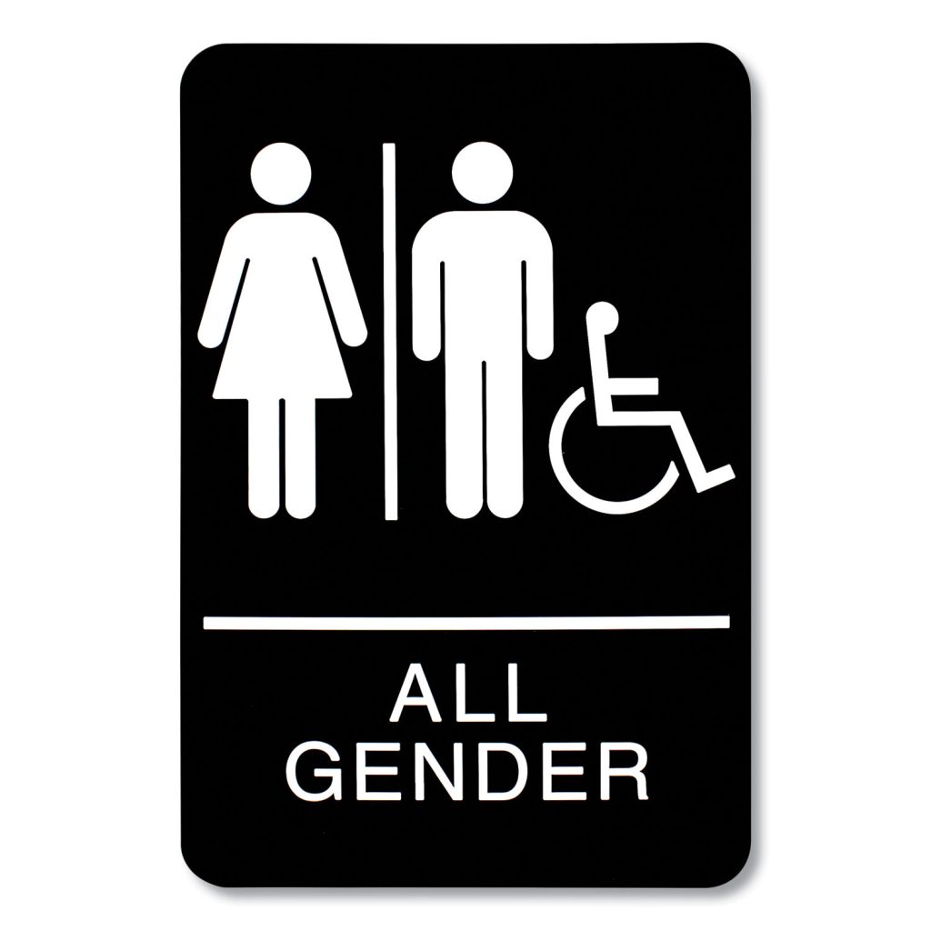 ADA Sign, All Gender/Wheelchair Accessible Tactile Symbol, Plastic, 6 x 9, Black/White