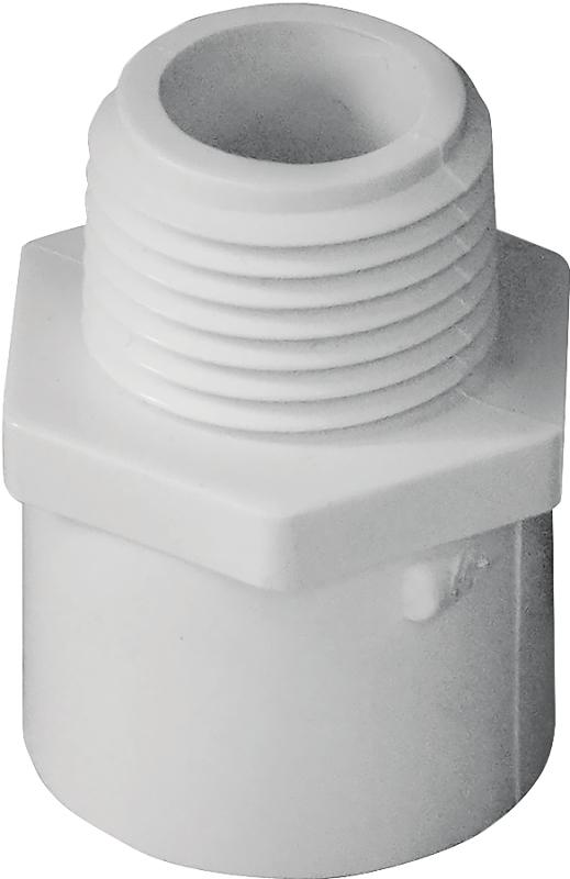 LASCO Pipe Adapter, Nominal Size: 1/2 in, MPT x Slip Connection, 600 psi, Operating Temperature: 73 to 140 deg F, Schedule Rating: SCH 40, PVC, White, 1-9/16 in L