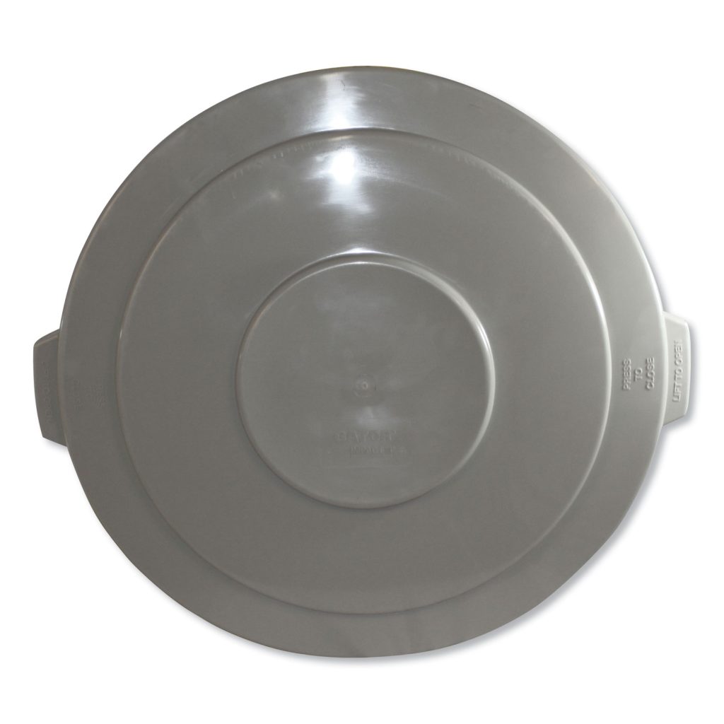 Lid locks tight even when tipped over, preventing internal spillage. One-piece molded construction creates high impact and crush resistance. For use with Gator containers. Lid Type: Flat-Top Lid; Material(s): Plastic; Color(s): Gray; Finish: Matte.