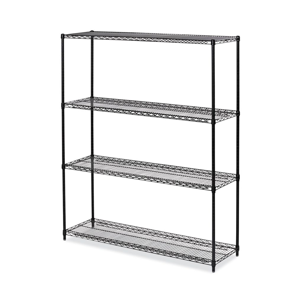 Universal storage solution ideal for industrial, foodservice and medical and all other storage needs. Long-lasting industrial grade finish resists corrosion in even the harshest environment, wet or dry. Heavy-duty shelves withstand constant re-stocking. Can be used in freezer applications and with an open design that allows for air circulation. Snap-together design assembles in minutes without tools. Can be set up as a four-tier single rack or as two two-tier racks to meet specific needs. NSF certified for wet and dry usage. Up to 1,000 lbs. per shelf (evenly distributed). Color: Black Anthracite Plus; Overall Width: 60″; Overall Depth: 18″; Overall Height: 72″.