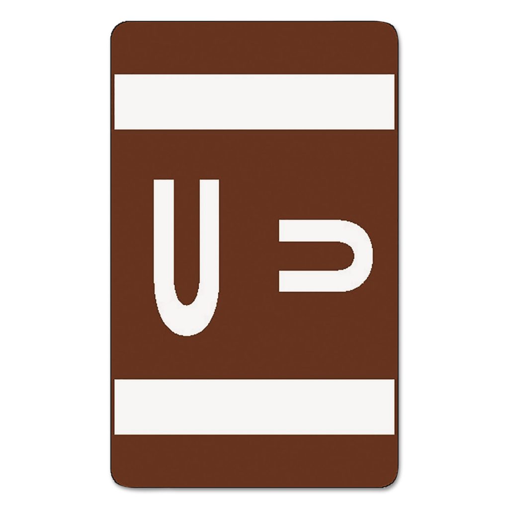 AlphaZ Color-Coded Second Letter Alphabetical Labels, U, 1 x 1.63, Dark Brown, 10/Sheet, 10 Sheets/P
