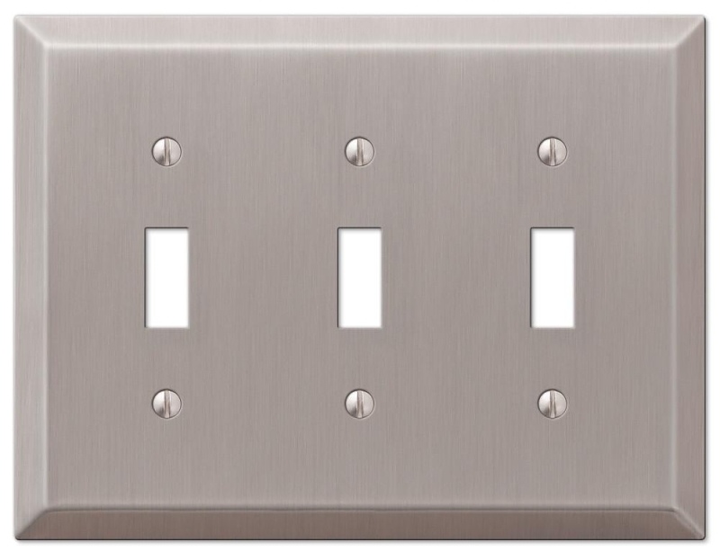 Amerelle Century 163TTTBN Wallplate, 4-15/16 in L, 6-1/2 in W, 3 -Gang, Steel, Brushed Nickel