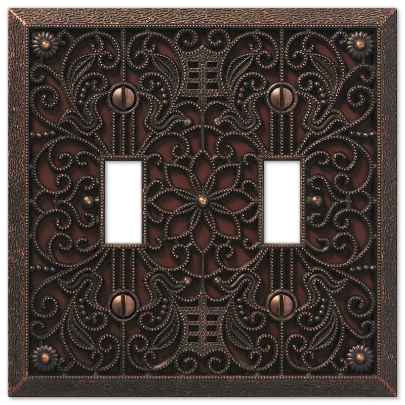 Amerelle Filigree 65TTDB Wallplate, 4-1/2 in L, 4-7/16 in W, 2-Gang, Metal, Aged Bronze
