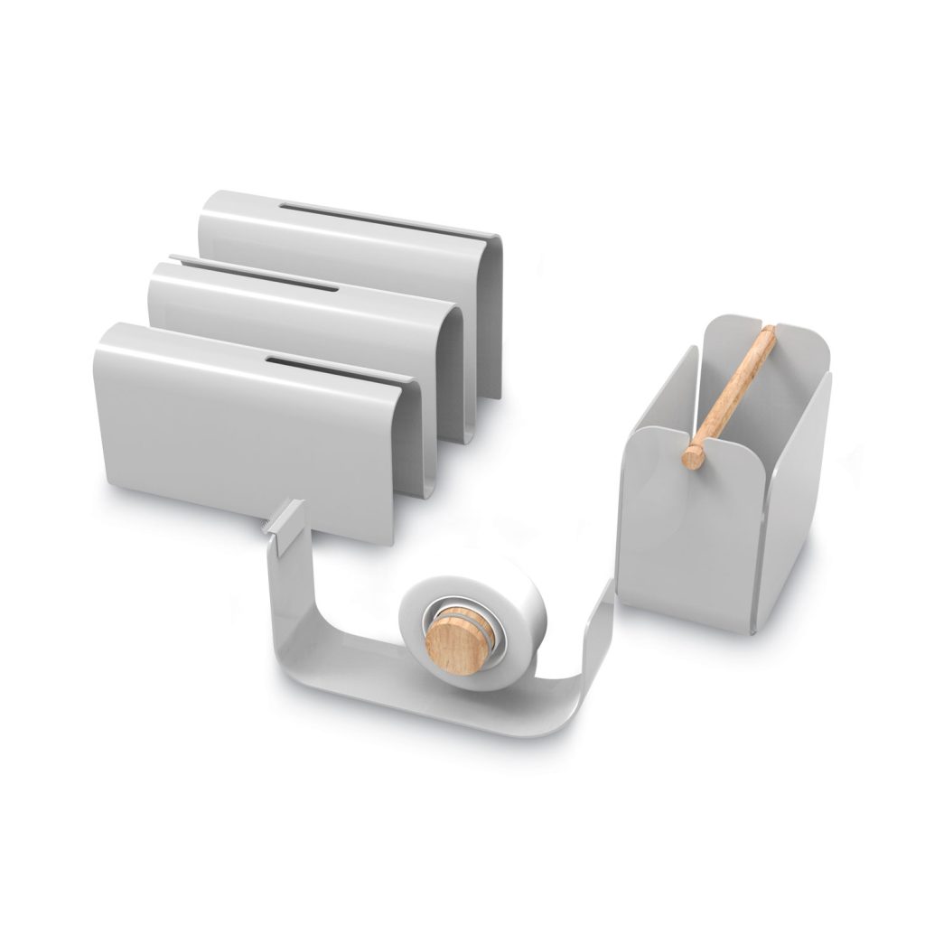 Through combining minimalist design with natural functionality, Arc inspires a clean and calm environment in an oftentimes messy and stressful workspace. Each piece is purposefully crafted with an open aesthetic, creating an organized space and inspiring an organized mind. Pulling inspiration from minimalistic architecture and Scandinavian design, the Arc desktop organization kit is built on a foundation of soft bends and natural elements. Desktop Supplies Organizer Type: Multipurpose; Number of Compartments: 3; Color(s): Gray; Material(s): Metal.