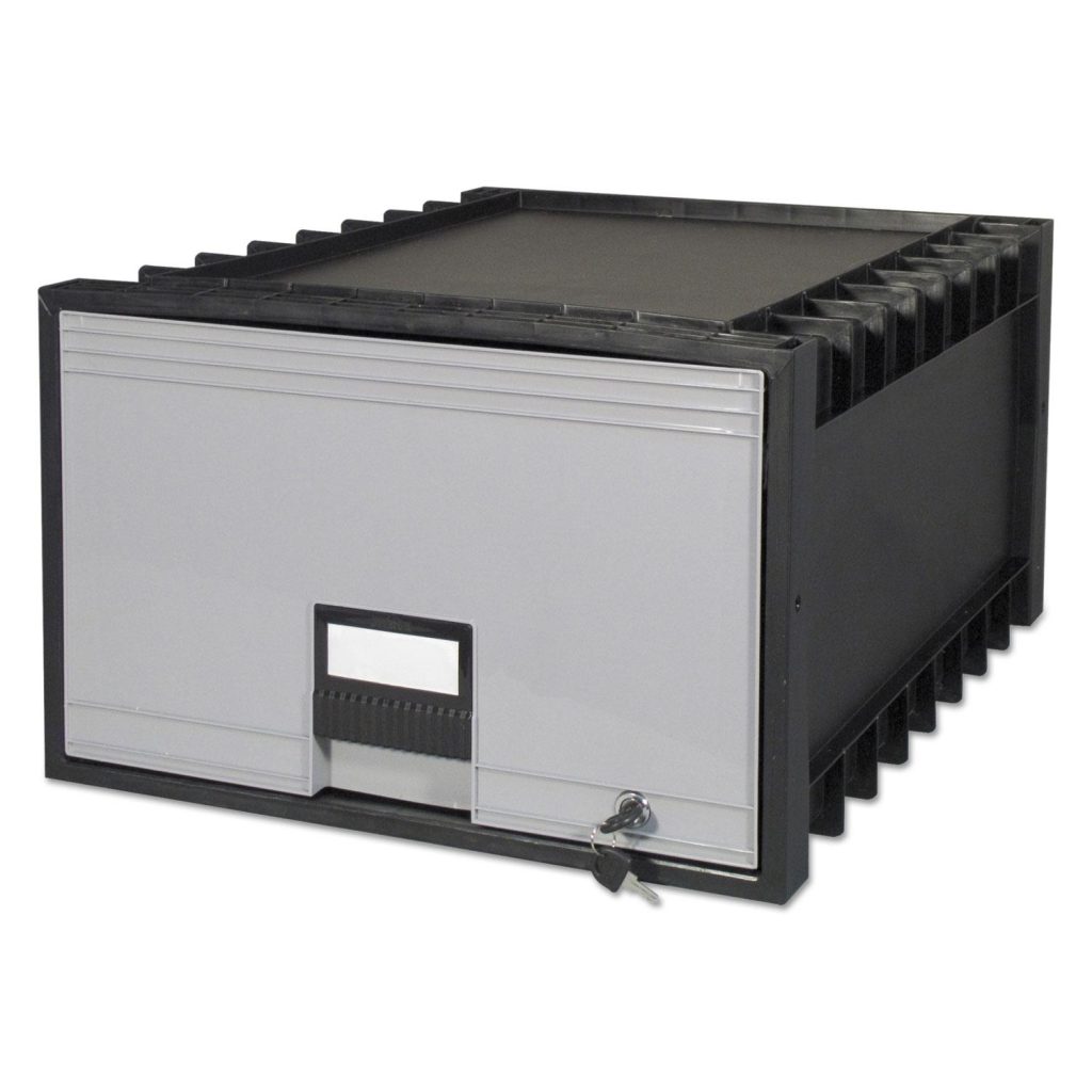 The heavy-duty Archive Drawer is built to maximize on storage in any room. Stackable and water-resistant, the Archive Drawer is a great alternative to cardboard boxes to keep your contents dry and easily accessible. The built-in label holder and reinforced handle make finding and grabbing the right item quick and easy. Included with each drawer are connectors to stack them up to 10 units high. With Built-In Key LockOffers added security. Holds legal sized files. Box Type: File Storage; Strength: Heavy-Duty; Capacity (Volume): 2.91 cu ft; Capacity (Weight): 50 lb.