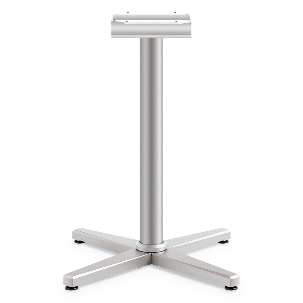 Creates a clean, contemporary aesthetic. Can be covered with optional disc shroud. For use with HON round hospitality table tops. Standard Height for 30-36″ Round Tops. Color Family: Silver; Base Color: Silver; Overall Width: 25.59″; Height Maximum: 27.89″.