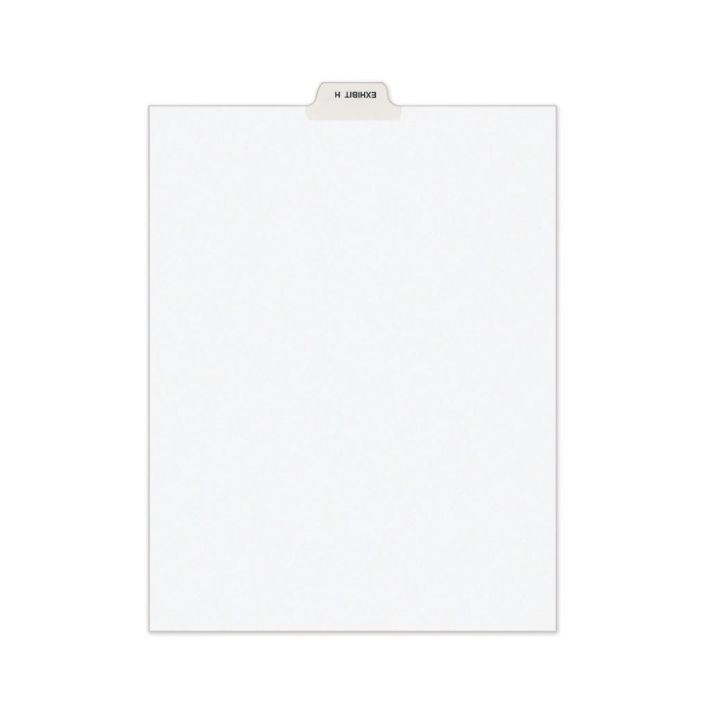 Avery-Style Preprinted Legal Bottom Tab Divider, 26-Tab, Exhibit H, 11 x 8.5, White, 25/PK