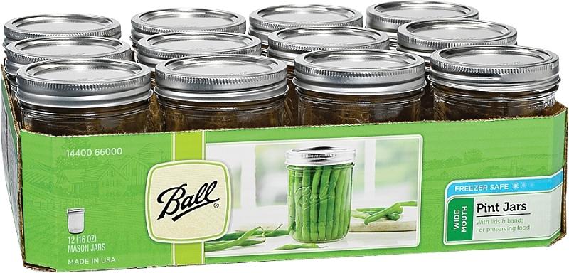 Ball 1440066000 Wide Mouth Mason Jar, 16 oz Capacity, Glass