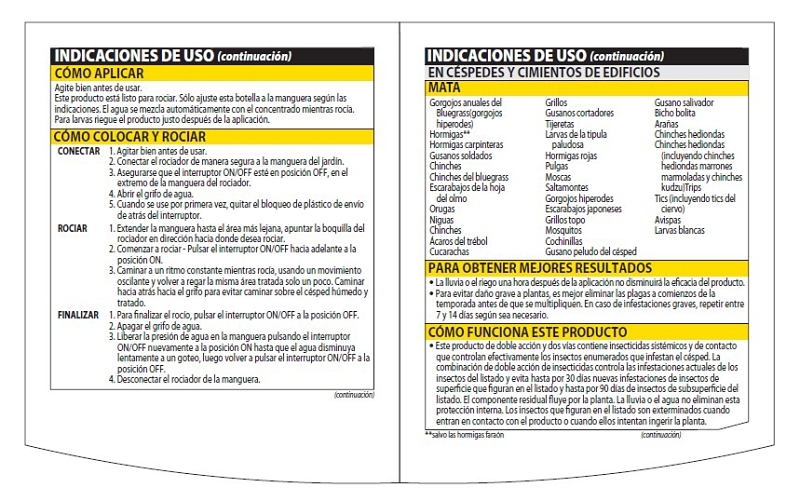 Exclusive 2-way formula, kills surface insects in 24 hrs, kills soil insects for up to 3 months. Rainproof within one hour. Covers 5334 sq-ft.