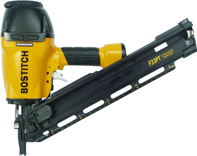 This 33 deg paper tape framing nailer is designed to drive nails into engineered lumber. It is lightweight for easy management and you can control the depth of the nail with a pushbutton. Depend on this 33 deg paper tape framing nailer for efficiency.