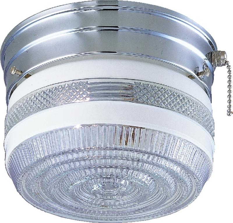 Clear and white prismatic glass shade. Polished chrome finish. 6-3/4 in Dia x 4-3/8 in H. Uses one clear, medium base bulb, 60 W maximum (not included). cULus listed.