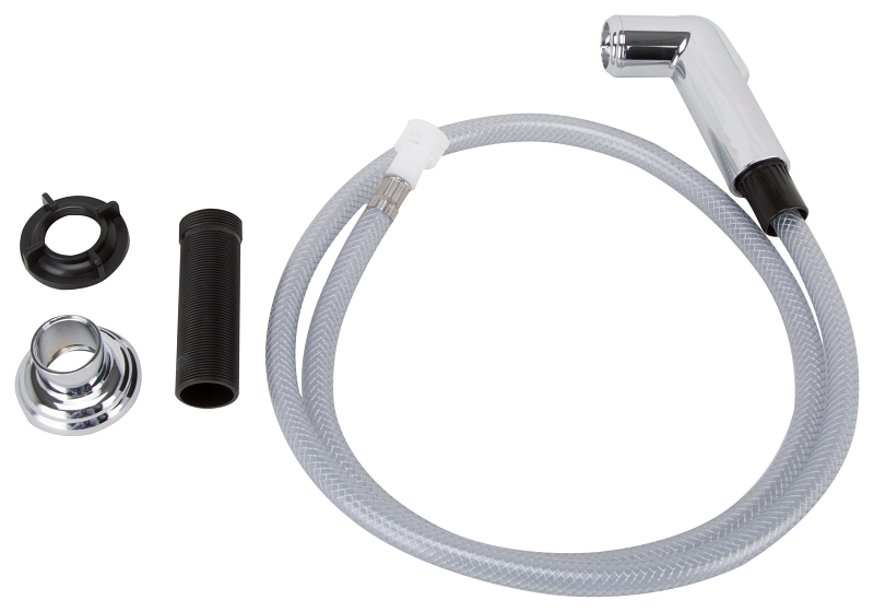 Use for kitchen sinks. Quick connect for easy installation and replacement. Includes chrome spray head and 48 in hose.
