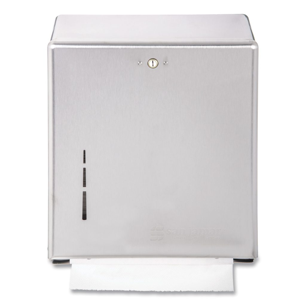 Versatile design allowd operators to choose which folded towel to use. This durable dispenser has a large capacity for reduced maintenance costs and a standard key lock to prevent towel theft. Towels Dispensers Type: Folded Towel Dispenser; Capacity (text): 500 Multifold; 300 C-Fold; Material(s): Steel; Color(s): Stainless Steel.