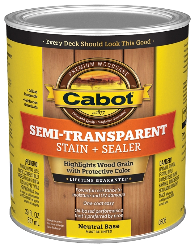 Cabot 140.0000306.005 Deck and Siding Stain, Neutral Base, Liquid, 1 qt