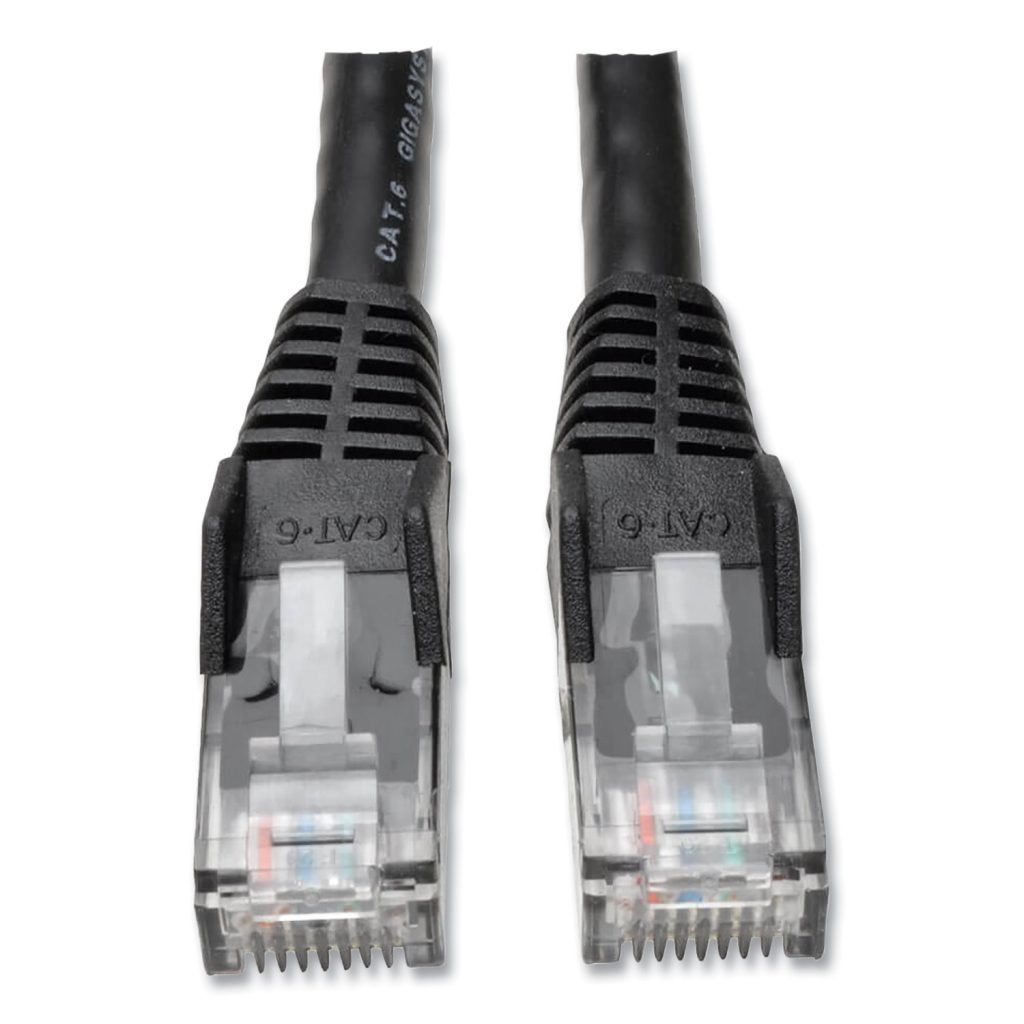 Ensures ultra-fast performance throughout your local area network application. Used to connect components like printers, computers, copy machines, routers, servers, modems, switches and Cat6 audio/video products. Manufactured from 24 AWG 4-pair stranded UTP with a staggered-pin plug design. Also provides high-speed connections and flawless signal delivery while keeping near-end crosstalk levels to a minimum. Delivers stable performance up to 550MHz. Features molded connectors with integral strain relief. Cable Type: CAT6 Snagless Molded; Connector/Port/Interface: Two RJ 45 Male; Connects Devices (From/To): CAT6/CAT5e; Cable Length: 25 ft.