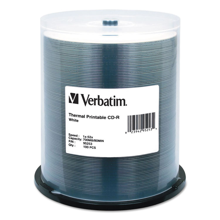 CD-R Discs, Printable, 700MB/80min, 52x, Spindle, White, 100/Pack