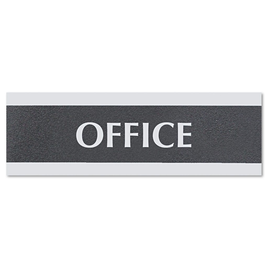 Century Series Office Sign, OFFICE, 9 x 3, Black/Silver