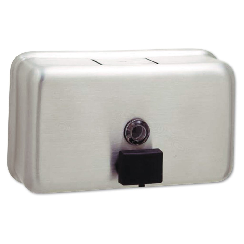 Attractive, satin-finished stainless steel dispenser enhances nearly any washroom. Corrosion-resistant valve. Clear acrylic refill-indicator window indicates when refill is required. Hinged filler-top requires special key to open. Unit features a concealed, vandal-resistant mounting. Dispenser Type: For Liquids; Capacity (Volume): 40 oz; Mounting: Wall; Material(s): Stainless Steel.