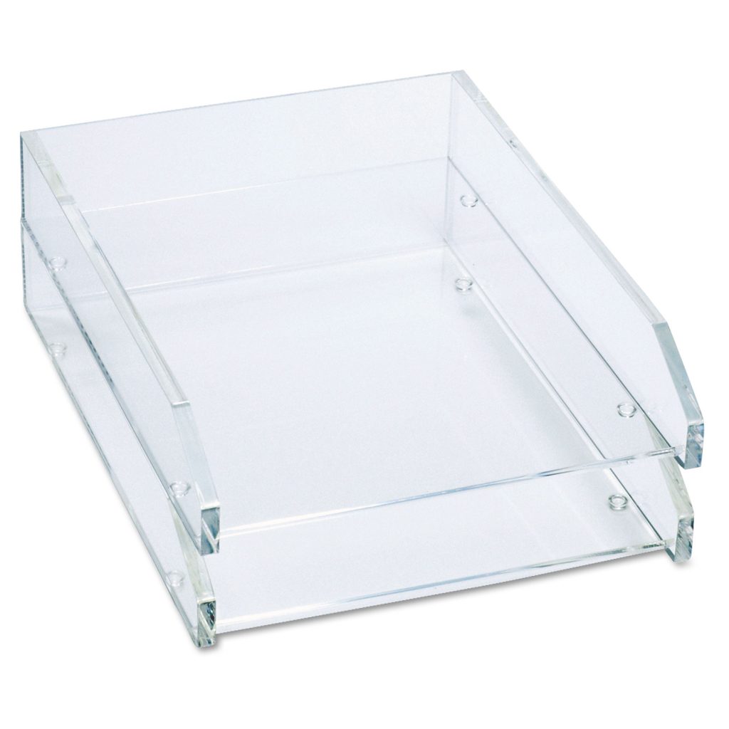 Keep your workspace organized and looking professional. Heavy cast clear acrylic combines elegance and durability. Nonskid feet protect desk. Can be used separately or stacked in straight or terraced position. Each tray measures 10 5/8″W x 13 3/4″D x 2 3/8″H. Number of Compartments: 2; For File Size: Letter; Load Orientation: Front; Color(s): Clear.