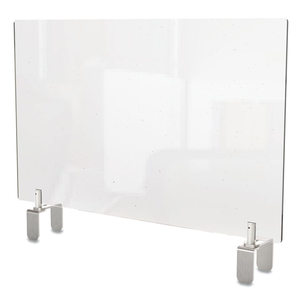 Ghent’s Partition Extendersadd height to cubicles and partitionsforaddedprotection, reduced noise, and privacy.As employees return to a full-time normal work schedule, there is no need to tear down cubicles to safely physically separate employees.Save time and money with these partition extenders that are designed to fit on most standard partition and cubicle systems from major office furniture manufacturers.Cubicle wall extenders mount to the top of existing systems.Partition extenders install easily andquicklyas all tools for installation are provided. Ghent’s Partition Extenders ship in worry-free packaging to ensure they arrive as expected. Color: Clear; Overall Width: 29″; Overall Depth: 3.88″; Overall Height: 18″.
