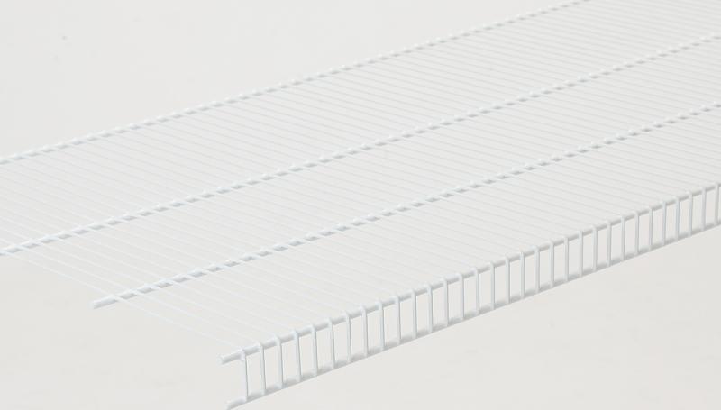 ClosetMaid close mesh shelving is ideal for pantries. The deck wires are spaced 5/8 in apart versus the 1 in on our other wire shelving. This “close mesh” wire shelving keeps small items in the pantry from tipping. Install with the ShelfTrack system and create a fully adjustable pantry.