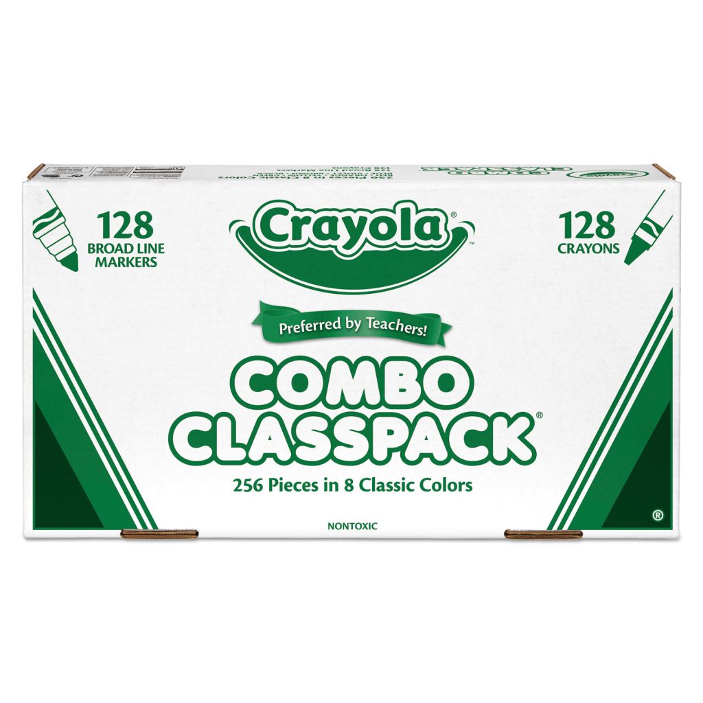 Combining two Crayola classics into one affordable pack! This crayons and markers combo classpack includes 128 crayons and 128 markers in eight different colors, 16 of each color. That’s 256 total pieces – enough for the whole class! 256 Pieces. Age Recommendation: All Ages.