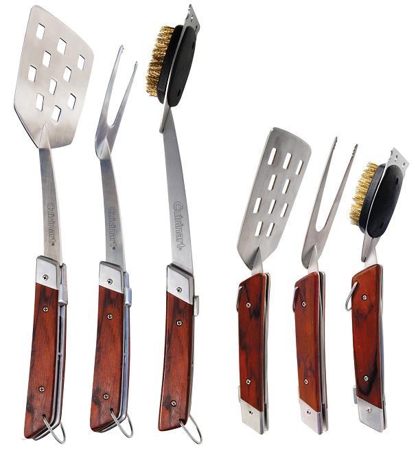 The Cuisinart Folding Tool Set combines the ease-of-use of full-sized wood handled grilling tools with the convenient storage ability of a kitchen utensil. At their full, extended length, the stainless steel spatula, fork and grill brush offer a 16-inch full-reach design so that you can handle all the foods on your grill without potentially burning your arms. When you are finished grilling the tools fold up to a convenient 11.5 inches – allowing you to save space in your bag and fit them in your kitchen drawers. The ideal tool set for the backyard, tailgating and camping.