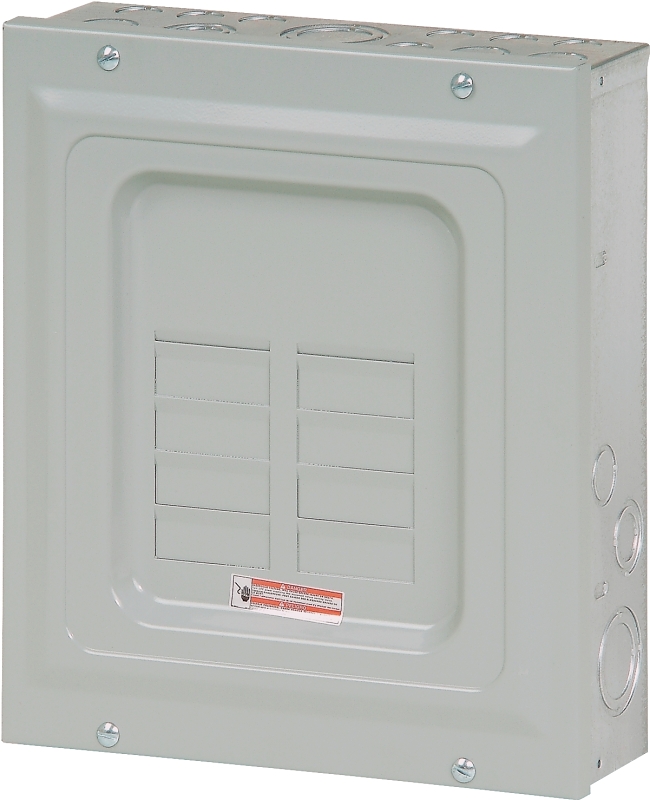 Load Centers are enclosures specifically designed to house the branch circuit breakers and wiring required to distribute power to individual circuits. They contain either a main breaker when used at the service entrance point or a main lug when used as a sub-panel to add circuits to existing service. The main breaker protects the main entire panel and can be used as a service disconnect. The branch breakers protect the wires leading to individual electrical loads such as fixtures and outlets.