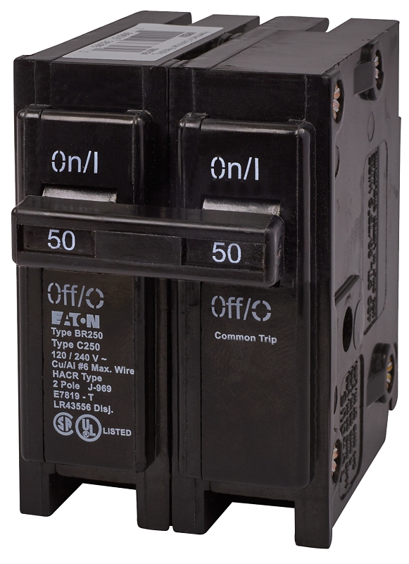 Cutler-Hammer BR250 Circuit Breaker, Mini, Type BR, 50 A, 2 -Pole, 120/240 V, Plug Mounting