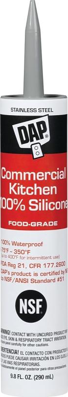 DAP commercial kitchen 100% silicone sealant is a one-component chemically-curing material ideal for sealing in commercial kitchens and is approved for food-zone areas. It provides a durable, watertight seal with minimal shrinkage. It offers long-lasting flexibility and excellent adhesion. Once cured, it is unaffected by temperature extremes. Cured sealant is mildew-resistant.