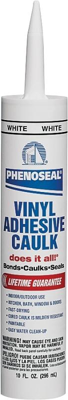 PHENOSEAL Does It All Vinyl adhesive caulk is an all-purpose adhesive caulk that can be used for interior and exterior applications. It bonds, caulks or seals most common building materials. It provides a durable, weatherproof seal by preventing air and moisture from passing through cracks and joints thereby improving energy efficiency. Cured caulk is mildew resistant. PHENOSEAL Does It All vinyl adhesive caulk can be painted over with latex and oil-based paints and it offers easy water clean up.