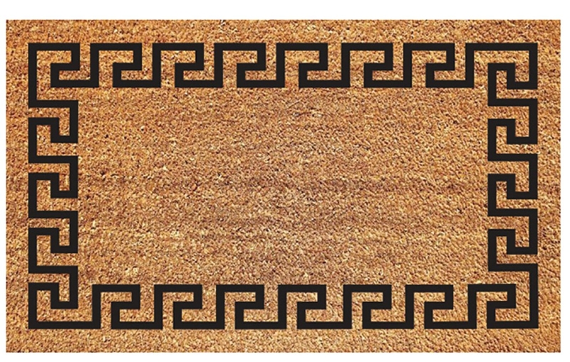 DeCoir Non-Slip Door Mat, Rectangular Shape, Greek Key Pattern, 18 in Length, 30 in Width, Vinyl Backing, Black/Tan, Indoor Indoor/Outdoor, Resists: Moisture, Mildew, Rot