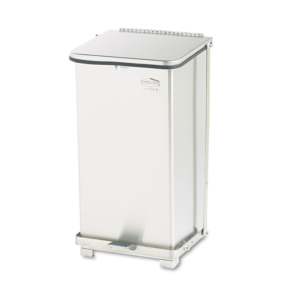 Rubbermaid Commercial Defenders Step-On Trash Can with Plastic Liner complies with OSHA standards on blood borne pathogens for the safe containment of infectious waste. These step-on trash cans feature a foot pedal for hands-free operation. Trash can is finished in powder-coat and is State Fire Marshal listed. Leak-Proof Plastic Liner & Odor-Barrier Gasket. Waste Receptacle Type: Biohazard/Infectious Waste Bin; Material(s): Steel; Application: Biohazardous Waste Disposal; Capacity (Volume): 6.5 gal.