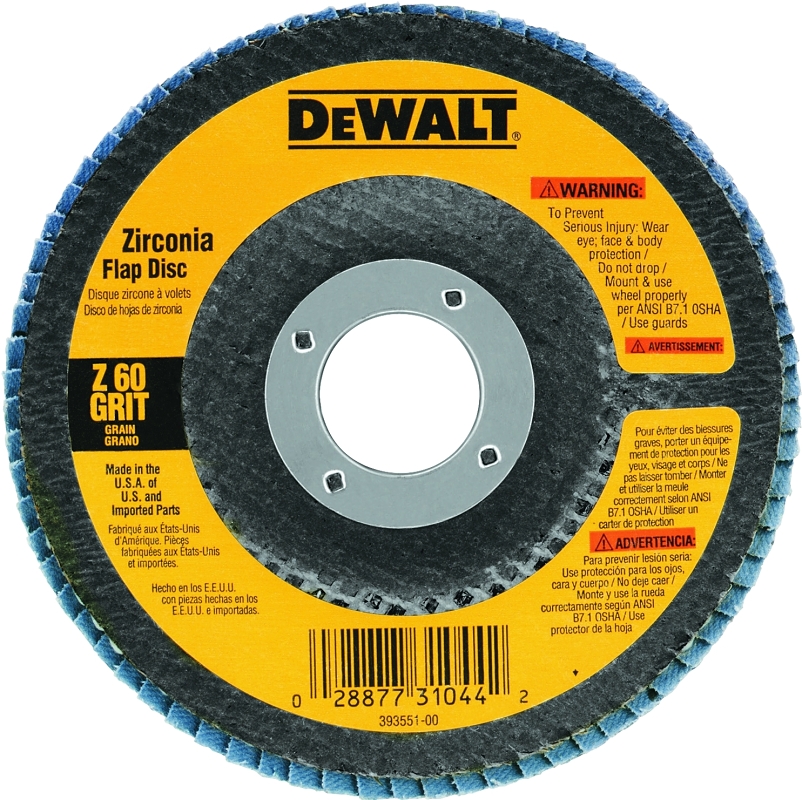 Designed for grinding angles of 20 to 25 deg, DeWALT-type 29 HP flap discs quickly remove material with aggressive grinding action. Featuring zirconia grit, which removes material 3X fast than fiber resin metal sanding discs, each disc is packed with a premium abrasive cloth that lasts 15X long than fiber resin metal sanding discs.