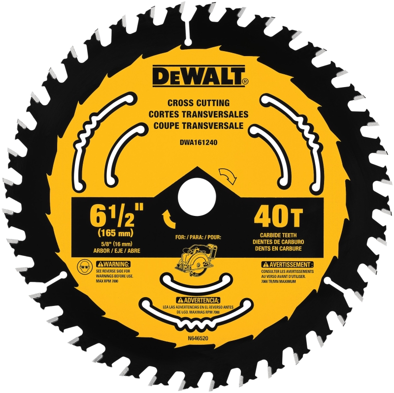 DeWALT DWA161240 Circular Saw Blade, 6-1/2 in Dia, 5/8 in Arbor, 40-Teeth