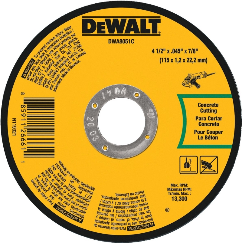 Packed with a high grain concentration for aggressive cuts and smooth-running wheels, DeWALT-type 1 masonry cutting wheels can tackle tough masonry with ease. A thin 0.045 in wheel design delivers quick, burr-free cutting and 2 full sheets of fiberglass offer durability and safety.