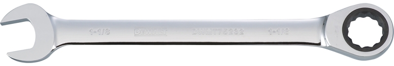 DeWALT Combination Wrench, SAE/Metric: SAE, 1-1/8 in Head, Offset Angle: 15 deg, Box End Thickness: 19/32 in, Box End Width: 2-1/32 in, Open End Thickness: 7/16 in, Open End Width: 2-3/16 in, Chrome, 14-1/8 in L