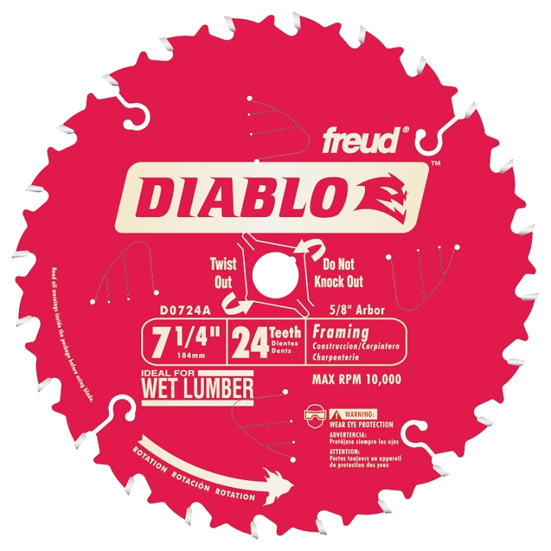 Diablo D0724A Circular Saw Blade, 7-1/4 in Dia, 5/8 in Arbor, 24-Teeth, Carbide Cutting Edge