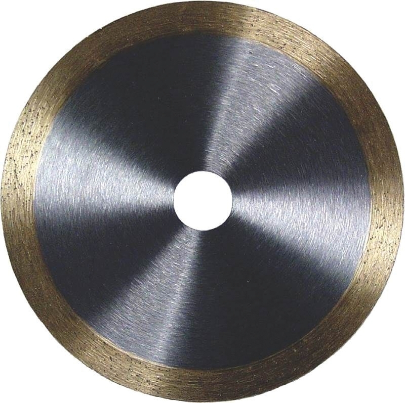 Continuous rim for a smooth wet or dry cut in granite, marble, glass and other hard, dense tiles with a tile or masonry saw.