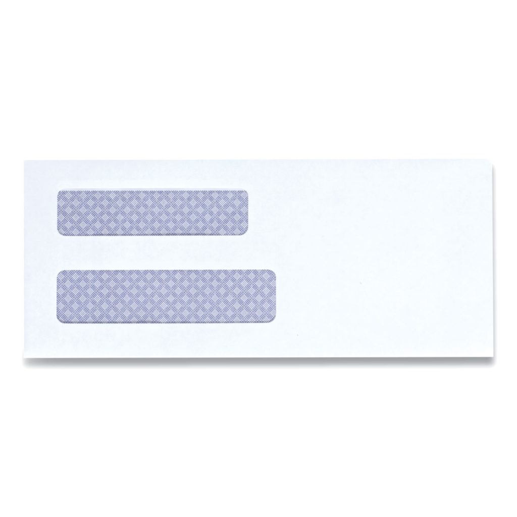 Double Window Business Envelope, #8 5/8, Square Flap, Self-Adhesive Closure, 3.63 x 8.63, White, 500